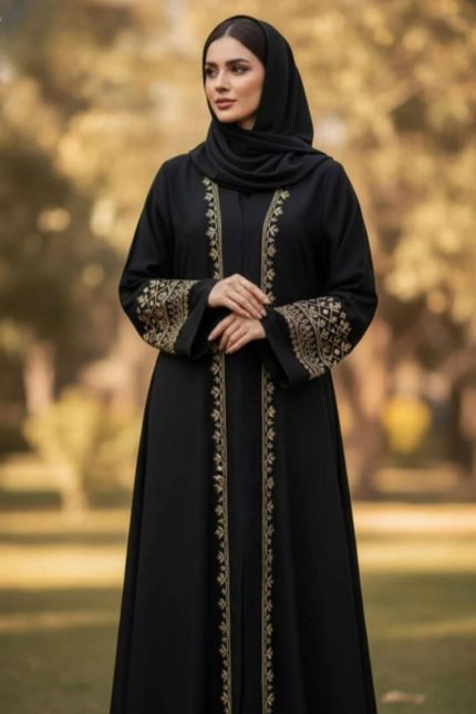 ১. এম্ব্রয়ডারি কাজ করা দুবাই চেরি কাপড়ের একটি আবায়া।